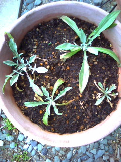 何だか植え替えたらやたらこざっぱりしてしまって、右上のやつばっかり育ってます。