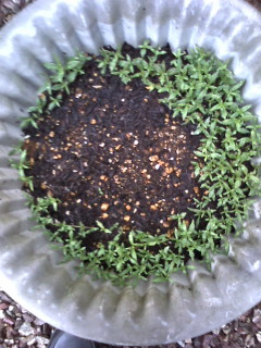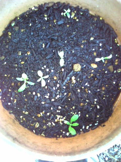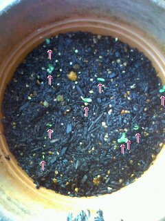 妹。気持ち悪いくらいに発芽しまくってます。緑っぽいのが全部芽。